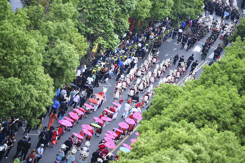 Taijiang County in Guizhou hosts the annual Miao Sisters Festival on May 2, 2023. /CFP