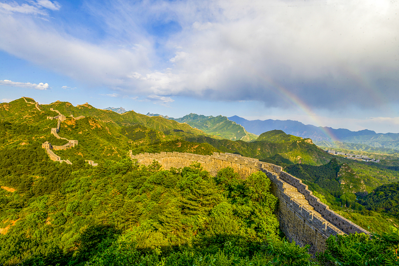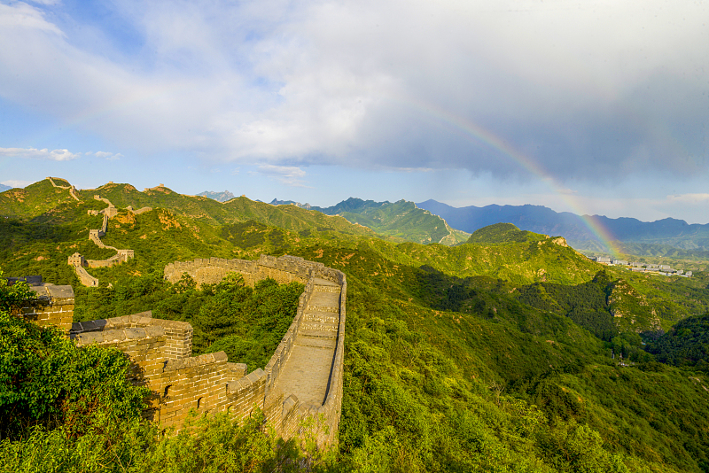 A rainbow appeared after rainfall at the Jinshanling section of the Great Wall in Hebei Province, creating a breathtaking scene in early summer. Built on the Jinshanling Mountain range during the Ming Dynasty (1368-1644), this section of the Great Wall is one of the best photo spots of architectural beauty.