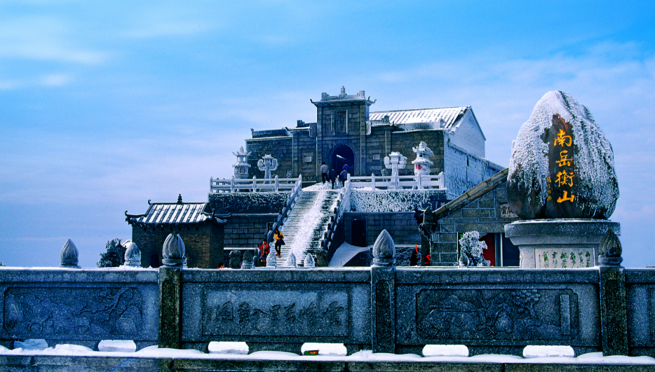 A winter view of Zhurong Peak at Hengshan Mountain in central China's Hunan Province. /Photo provided to CGTN