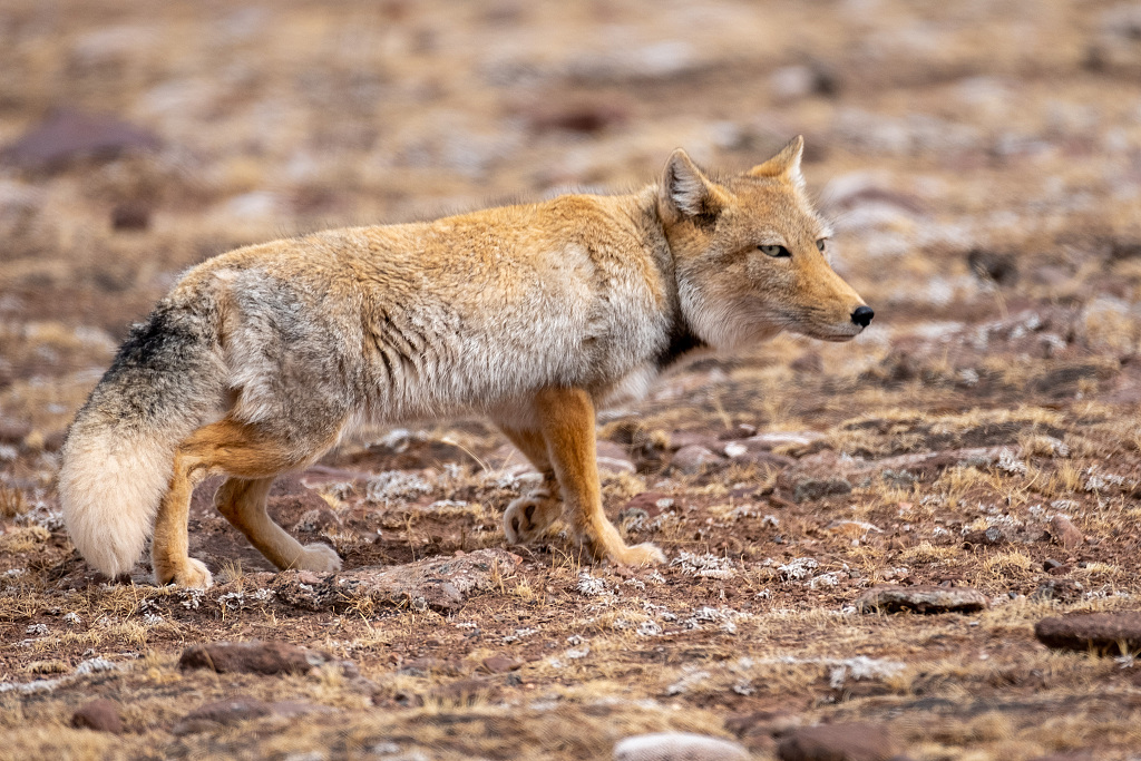 Photos show a Tibetan fox wandering on the Qiangtang Grassland in Nagqu, Xizang, China. /CFP