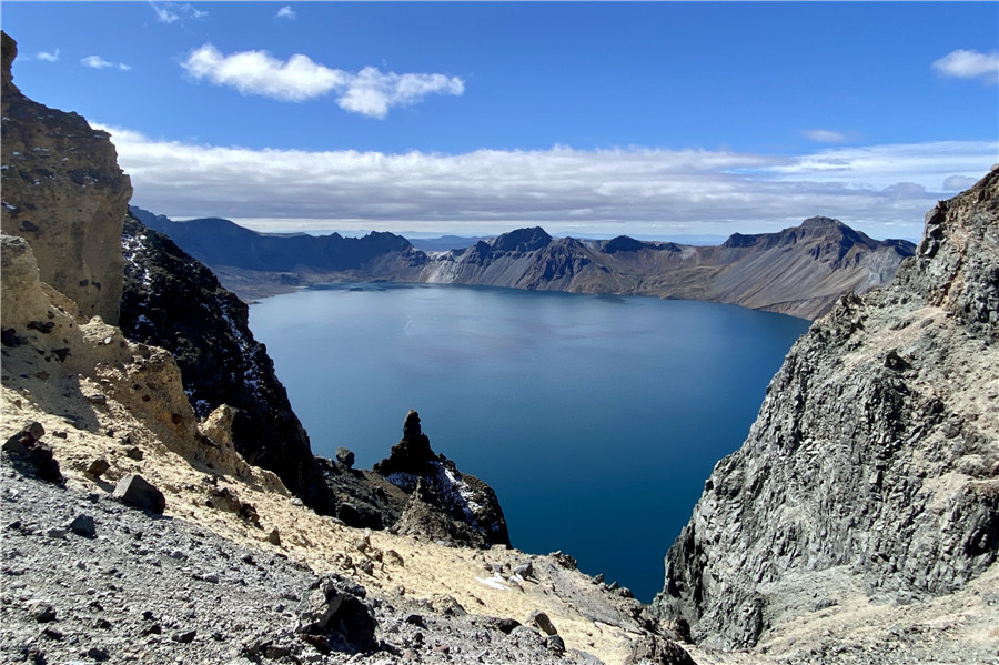 The Tianchi Lake, or Heavenly Lake, glistens atop the Changbai Mountain in Yanbian Korean autonomous prefecture, Jilin province, Sept 25, 2023. It's a crater lake atop the Changbai Mountain. [Photo by Li Ping/chinadaily.com.cn]