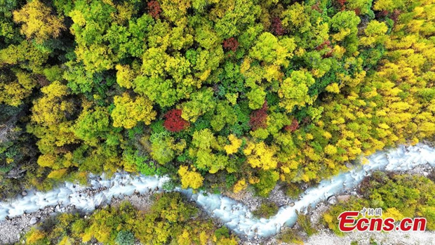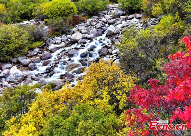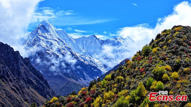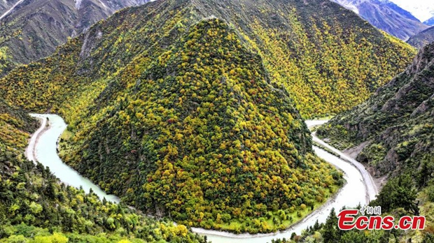 Snow-capped mountains and colorful National Wetland Park turn Lhari county into gorgeous autumn landscape in Nagchu, Southwest China's Tibet autonomous region. [Photo/Ecns.cn]