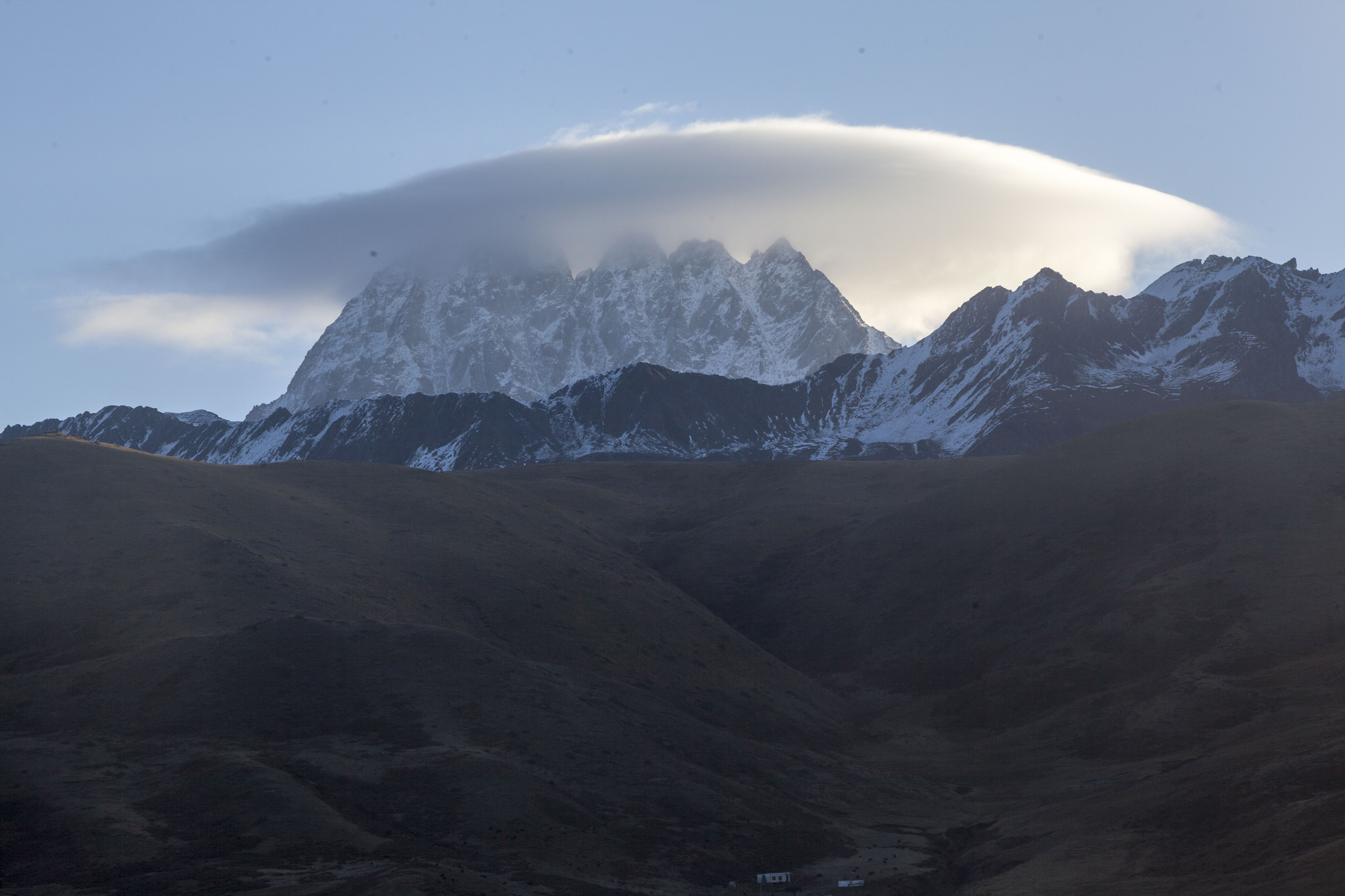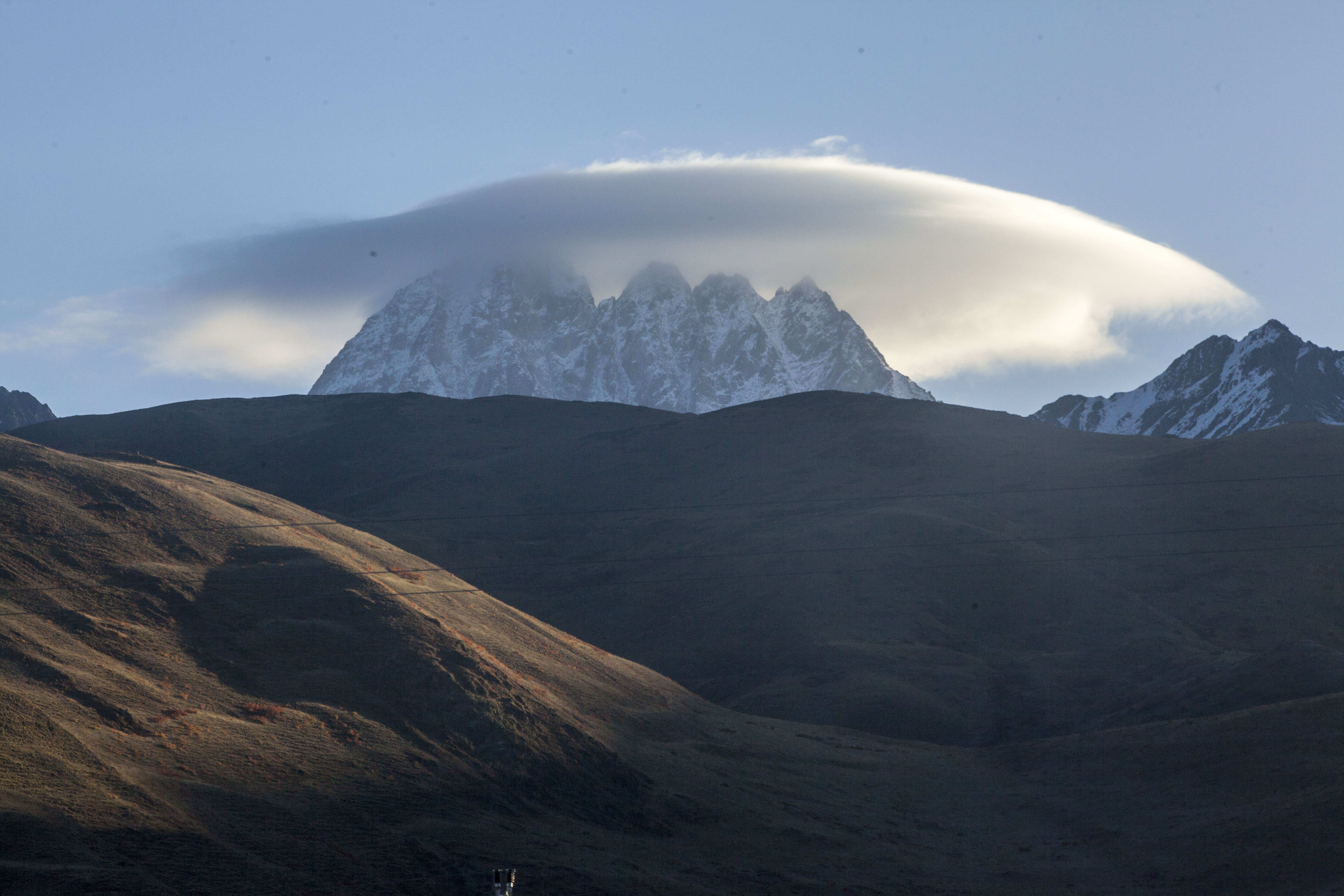 The photo taken on October 19, 2023, shows the Yala Mountains capped with lenticular clouds in Ganzi, Sichuan Province. /IC