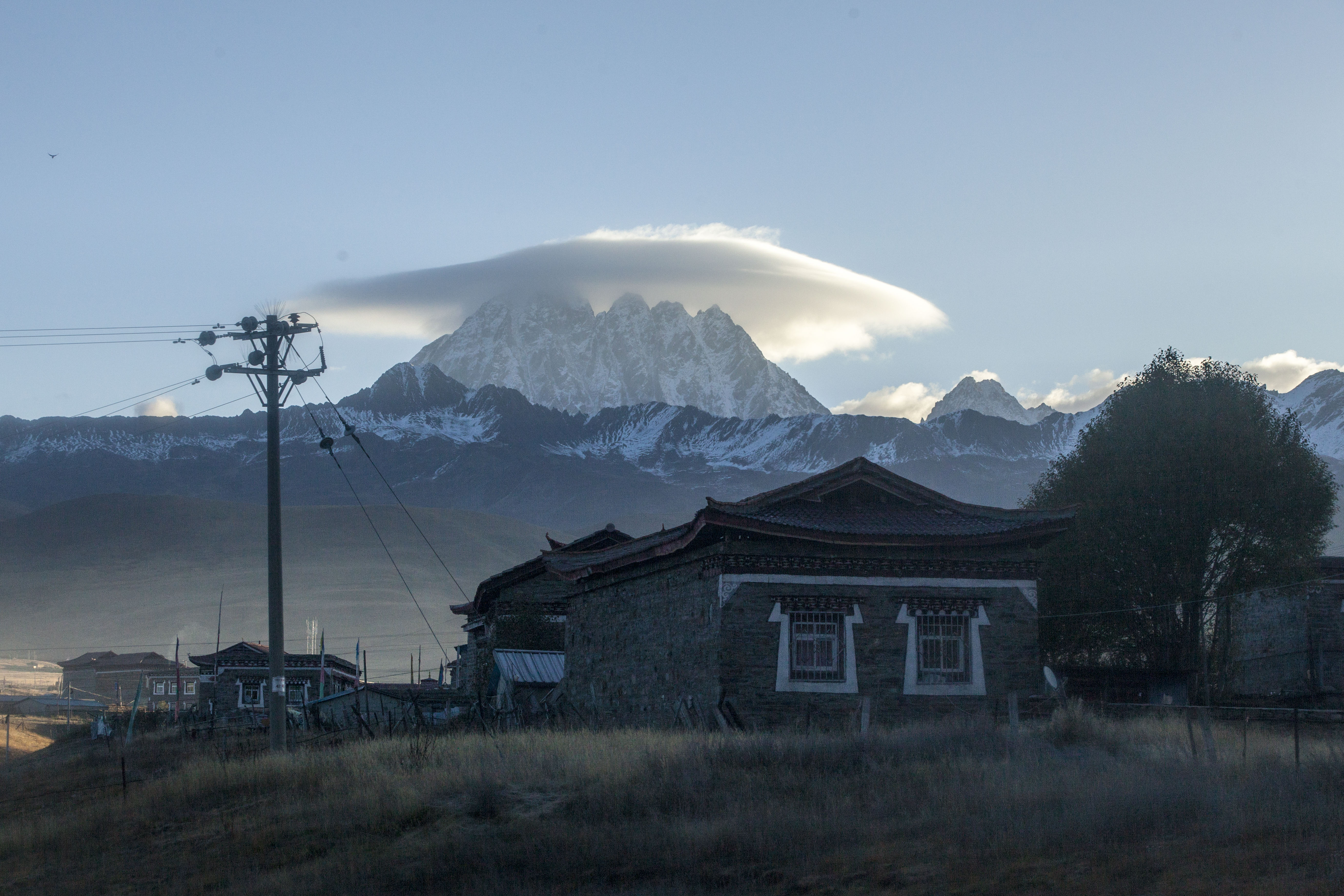Resembling a gigantic UFO hovering over the Yala Mountains, lenticular clouds form over the peaks of the sacred mountains in Ganzi, southwest China's Sichuan Province, adding a layer of mystery to the snow-capped mountains.