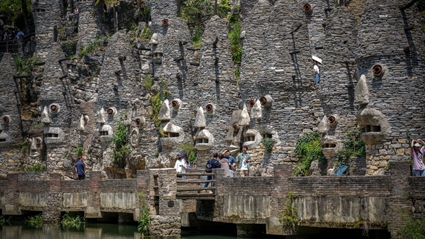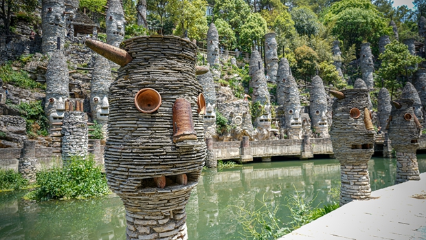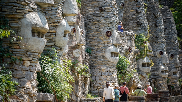 With massive sculptures featuring mythical human faces standing on the two sides of a river, the Yelang Valley, located in Guizhou Province, has been dubbed a Chinese version of the famous Easter Island. The human-shaped stone statues here are made of old pottery, tiles, stones, and other waste materials by a local artist. The exaggerated expressions of these faces are inspired by the masks of Guizhou Nuo Opera.