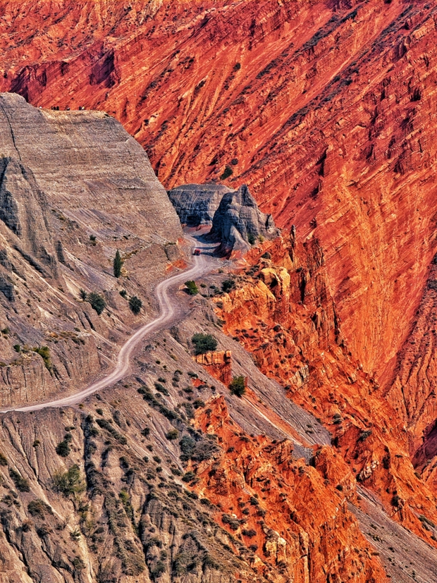 Stretching for around 30 kilometers, the Anjihai Grand Canyon took on its miraculous form as the Anjihai River surged from its source in the Tianshan Mountains through the Tianshan Canyon, carving a path over millennia to leave this mesmerizing colorful "ribbon" fluttering over the surface of the earth.