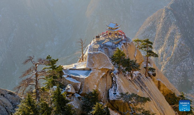 Those photos taken on Dec. 12, 2023 shows the snow scenery of Huashan Mountain in Weinan, northwest China's Shaanxi Province. (Photo by Zhao Xiaogang/Xinhua)