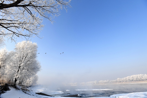 The freezing cold temperatures seem to have worked their magic on the trees lining the banks of the frozen Hunhe River in Shenyang, northeast China's Liaoning Province. The stunning rime on the trees offers living proof of winter's grip. With the blue sky contrasting beautifully with the white rime, even a virtual tour of the riverbank is an enchanting way to clear the mind and soothe the senses in winter.