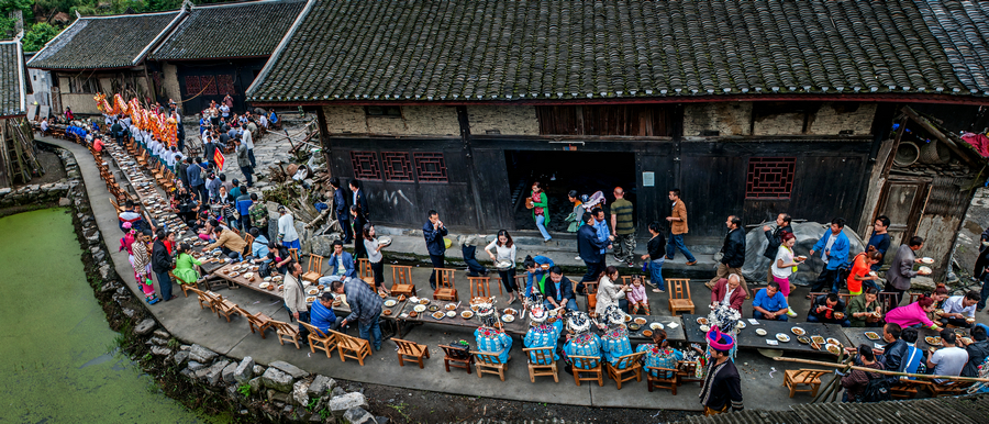 Long-table banquets at Shibadong Village [Photo provided to chinadaily.com.cn]