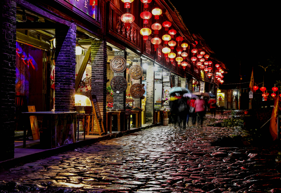 Ancient Street in the Rainy Night. [Photo provided to chinadaily.com.cn]