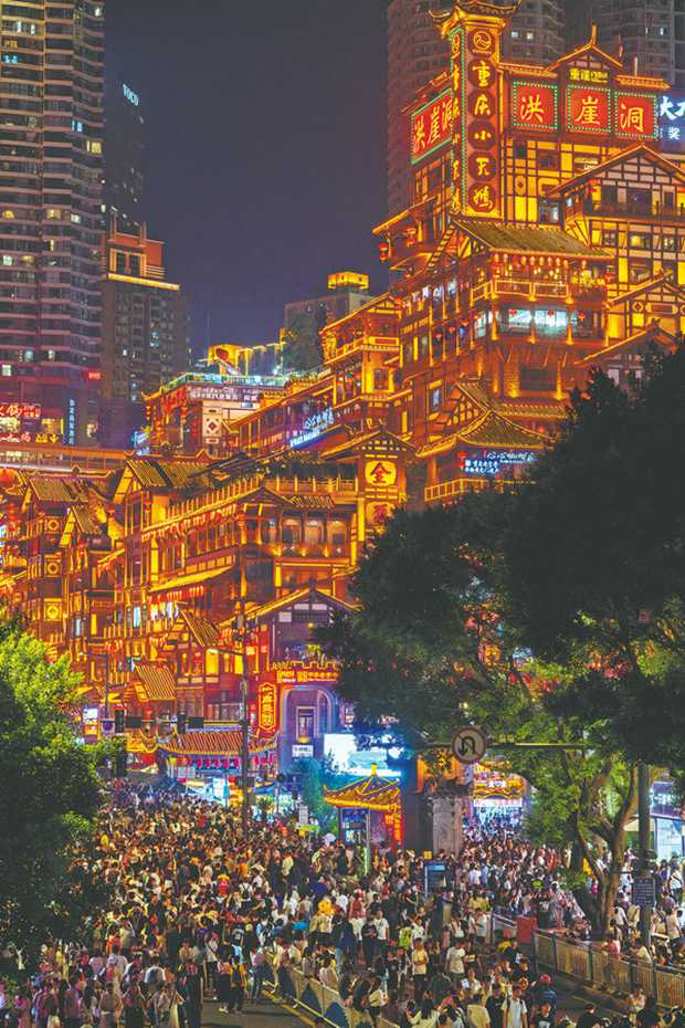 The Hongyadong complex is one of the best sites to experience the local nightlife in Chongqing. [Photo by XU LIN/TAN YINGZI/CHINA DAILY]