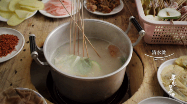Although "clear water blanching" might sound plain, it is actually a delightful experience for the palate. The hotpot starts with a carefully simmered, rich pork bone broth, whose pure and savory flavor immediately wins over diners. Ingredients like pork tendon, egg dumplings, and various vegetables are blanched in the broth and then dipped in a seasoned chili and Houttuynia cordata sauce, creating a simple yet delicious pairing that goes perfectly with rice.