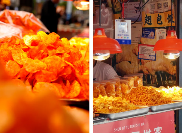 Fried potatoes are everywhere, cut into cubes or wavy "wolf tooth" shapes, then tossed with chili powder, zhe'ergen, and other seasonings. One bite leads to another—it’s simply addictive.