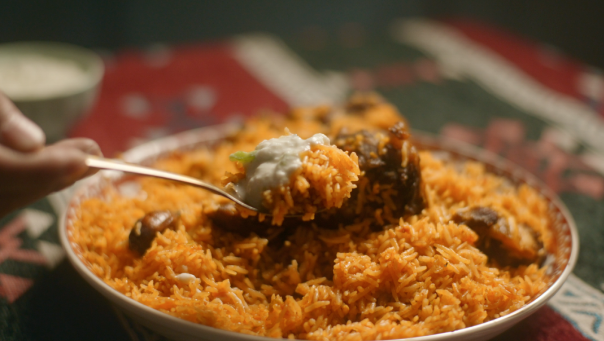 In contrast, "yellow pilaf," beloved by Pakistani merchants in Kashgar, replaces yellow carrots with green peppers and adds a variety of spices. It's eaten in a unique way—mixed with yogurt—resulting in a spicy kick that may challenge those not accustomed to heat.