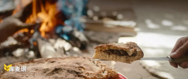 Heading east from Kashgar into the heart of the Taklamakan Desert, locals prepare a unique bread called "kumachi." Fresh sand is poured into a fire pit, and poplar wood is lit underneath. Once the sand is heated, the pit becomes a natural oven. The bread baked in the sand develops a dry, hard crust from the long baking process, with a golden surface and a rich, toasted aroma. Breaking it open releases savory juices and tender, stewed lamb.
