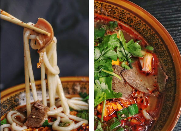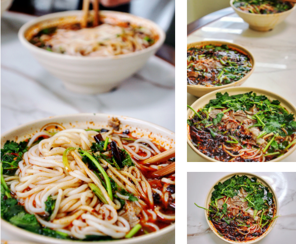 A perfect bowl of lamb noodles delights not only the eyes with its layer of red oil, garnished with cilantro, scallions, and garlic sprouts, but also the palate with its carefully simmered lamb broth and special chili oil. The tangy, spicy, and numbing seasonings intertwine with the smooth yet chewy rice noodles, accompanied by thinly sliced cooked lamb with skin and an assortment of pickled vegetables—each bite is irresistible.