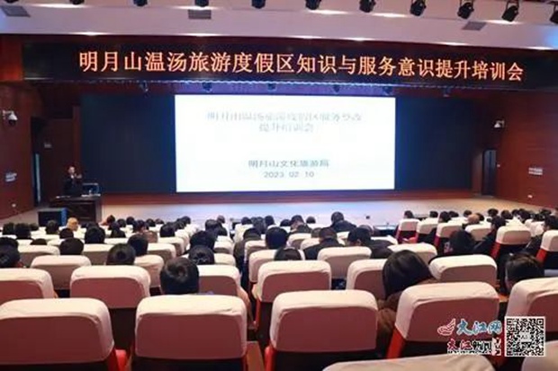 In order to further enhance the overall image of tourism services of Mingyue Mountain and help the high-quality development of tourism industry of Mingyue Mountain, recently, the knowledge and service awareness promotion training of Mingyue Mountain Warm Soup Tourism Resort organized by Yichun Mingyue Mountain Culture and Tourism Bureau was held. More than 210 people from the district's main tourist reception points, community grid volunteers, traffic police, urban management and other law enforcement personnel attended the training.