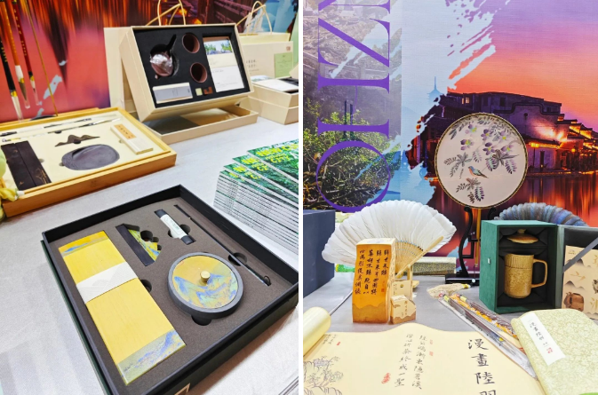 In this event, Lu Yu Scroll, Zhao Mengd «¯ Home gift box, "Yipin Jiangshan" lake brush, "Feiying Tower" porcelain ware, porcelain source ceramic cup, "An Li" and "Jili" cultural and creative products, Tiangong feather fan, Shuanglin silk circle fan, silk scarves and other cultural and creative products will be displayed in Beijing, fully displaying Huzhou's beautiful eco-tourism environment and profound cultural history