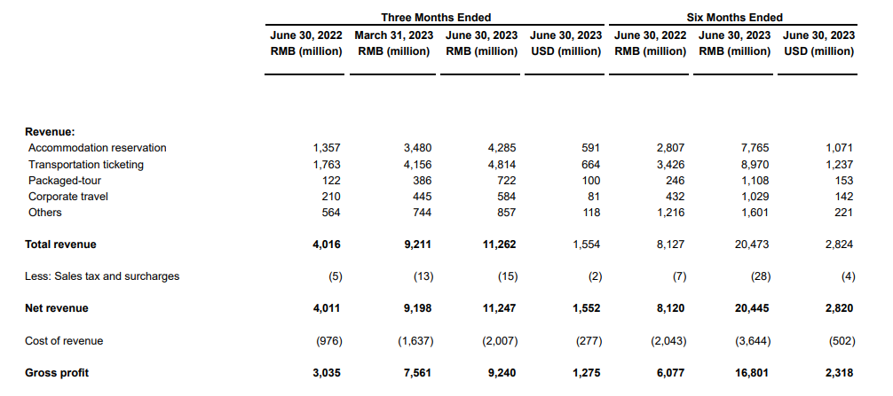 Trip.com Group said its net revenue of RMB 11.2 billion (USD 1.6 billion) increased by 180% year over year in the second quarter this year and exceeded the pre-COVID level for the same period in 2019 by 29%.