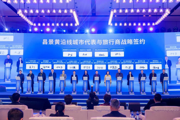 Representatives from multiple domestic destinations sign cooperation deals with major travel agencies to boost tourism. [Photo provided to China Daily]