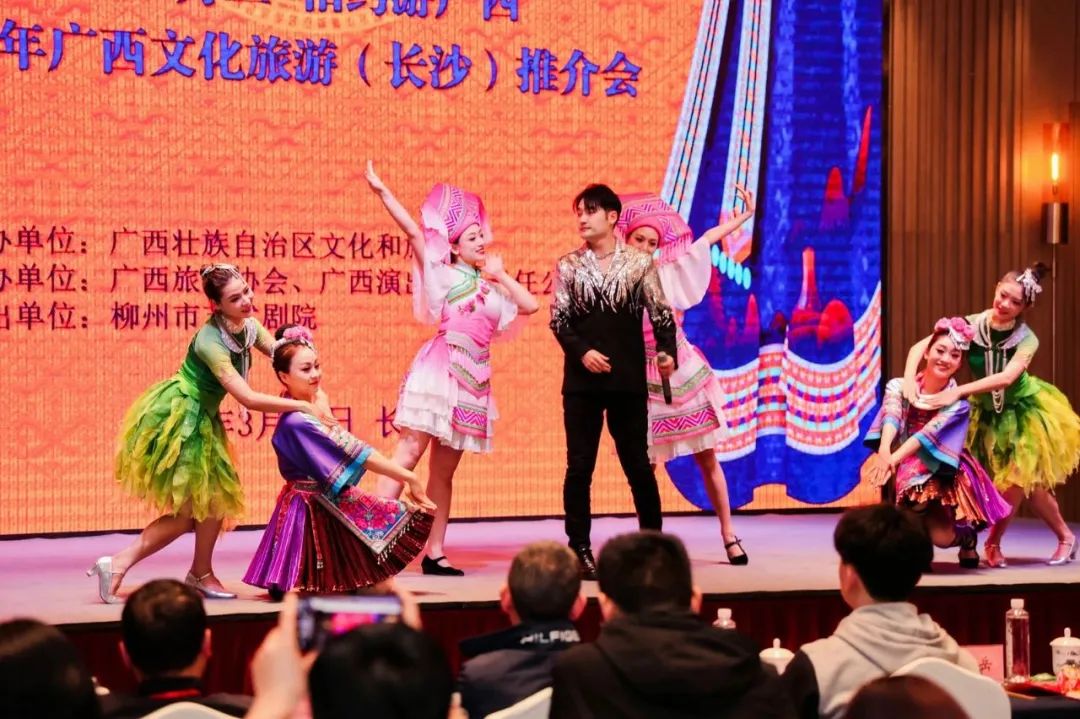 On March 26th, the 2024 Guangxi Cultural Tourism Changsha Promotion Conference, hosted by The Guangxi Zhuang Autonomous Region Culture and Tourism Department and co-organized by Guangxi Tourism Association and Guangxi Performance Co., Ltd., was successfully held. More than 100 people from Hunan and Guangxi cultural tourism industry associations, enterprise representatives and news media participated in the event. This promotion conference took the opportunity of Double Third Festival to promote Guangxi's high-quality cultural tourism resources to tourists nationwide in the form of performance+ promotion.
