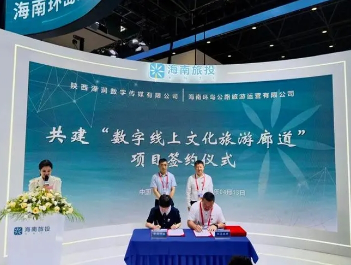 Recently, the 4th China International Consumer Expo, with the theme of "Sharing Open Opportunities and Co-creat a Better Life", was held in Haikou, Hainan Province. On the opening day, Ge Yongqi, Deputy Secretary of the Party Committee and General Manager of Hainan Tourism Investment Group Co., Ltd., Jin Zhenan, Deputy General Manager of Shaanxi Tourism Group Co., Ltd., and other attendees attended the signing ceremony of the first batch of strategic cooperation brands on the "All-way Connection, Creating a Wonderful" Hainan Island Tourism Highway, and reached a strategic cooperation consensus on the "Digital Online Cultural Tourism Corridor" project.