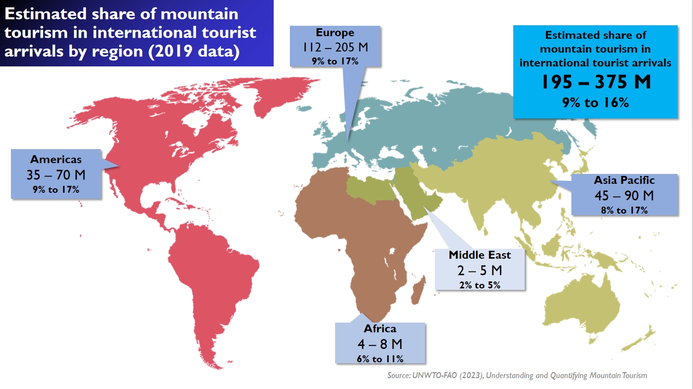 Estimated share of mountain tourism in international tourist arrivals by region