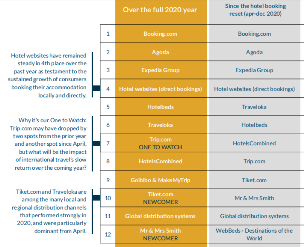 According to SiteMinder data based on gross revenue sources for all users of its platform across more than 20 of the world's top destinations, hotel websites maintained their top-five position in all destinations over the full year 2020.