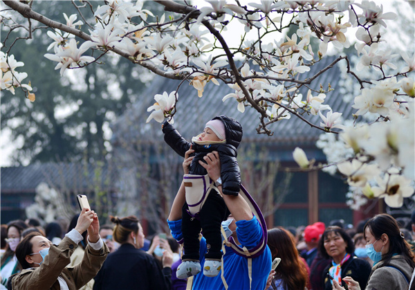 Tourists flock to the Summer Palace in Beijing to enjoy the flowers on March 27, 2021. [Photo/Asia News Photo]