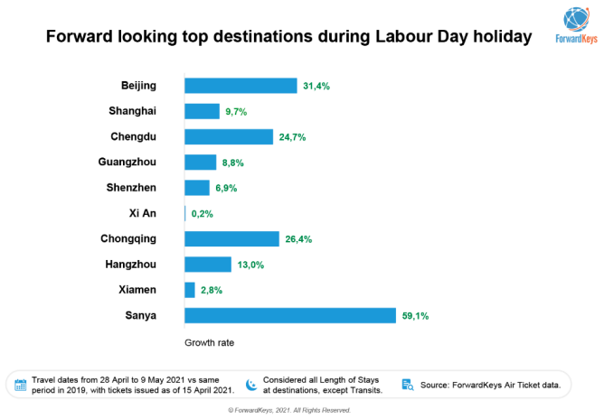 Chinese domestic travel during the forthcoming Labour Day holiday is set to exceed pre-pandemic levels substantially, according to research undertaken by ForwardKeys.