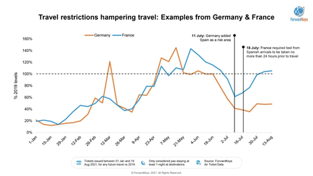 “Withstanding where you are in the world, you are a winning destination showing resilience if you are smartly promoting sun and sea leisure destinations; remained open throughout the pandemic or wisely made announcements in advance of key tourism periods; kept your travel restrictions consistent and easy to follow, allowing travellers to plan ahead,” says Olivier Ponti, VP of Insights at ForwardKeys.