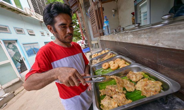 Chef Ilhani used to serve up Japanese cuisine to holidaymakers every night, now he makes just $3 a day selling fried snacks on the near empty streets of once bustling Gili Trawangan.
