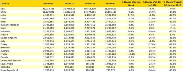 With nearly 84 million seats scheduled for operation this week, global airline capacity is up by 375,000 in the last week - as airlines originally planned to get everyone back home ready to start work once again. Slight reductions in North American capacity are reported as some airlines have moved to take schedules out for the next few weeks; most noticeably Southwest with an 11% cut in weekly capacity. However, strong capacity growth in Asia and Lower South America cover the loss of capacity elsewhere leaving us with 22% fewer seats than in January 2020. With demand still lower than in “normal” times it is very likely that the total market remains around 40% below 2020 levels and heading into 2022 airlines will be praying for the return of the corporate traveller; sadly they may have to pray for a long time given other factors at play at the moment.
