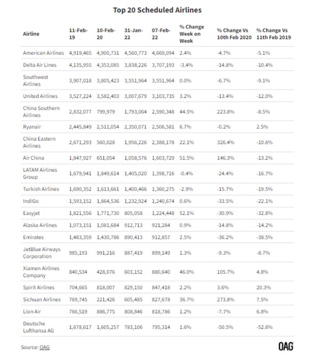 Global airline capacity has bounced back this week quicker than an Olympic ski boarder, with airline capacity now at 78.9 million from the previous week's depressing 73.7 million. A 7% increase in capacity week-on-week built upon China going for gold with a staggering 33% increase in scheduled airline seats, but other countries have contributed as well and deserve their podium finishes.