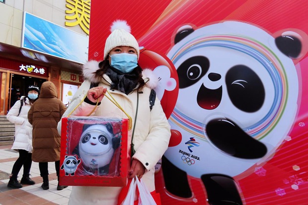 A citizen in Beijing displays her newly bought licensed products of the Beijing 2022 Winter Olympics, Feb. 6, 2022. (People’s Daily Online/He Luqi)