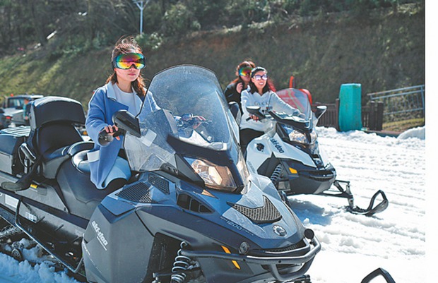 Skis are not the only means to get around at the resort. CHINA DAILY