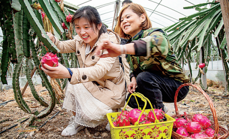 Having fun picking dragon fruit in Sanbushi village in Jinhua, Zhejiang province. HU XIAOFEI/FOR CHINA DAILY