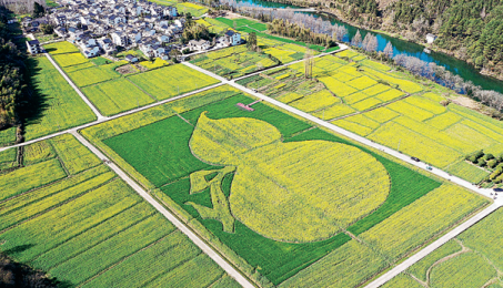 A field of rapeseed flower is cultivated into the pattern of a gourd in Nankeng village, Huangshan, Anhui province. SHI YALEI/FOR CHINA DAILY