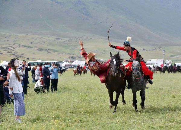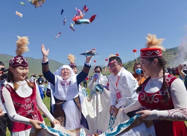 On June 25, 2022, the Kanas Culture and Tourism Week, the 20th Aqin Aytis Festival, and the Second Traditional Sports Meeting of Ethnic Minorities were held on the Argonne Ghet grassland in Burqin county, Altay prefecture, Xinjiang Uygur autonomous region. [Photo courtesy of Altay prefectural government]