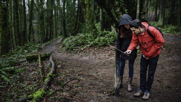 Couple hiking through the woods near Portland, Oregon. (photo via KQconcepts/iStock/Getty Images Plus)