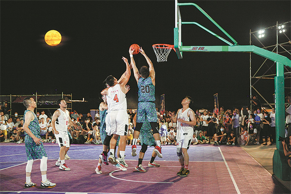 A seaside basketball court at the sailing center held a related sports event during the three-day Mid-Autumn Festival holiday in September,as part of the "youth and sea" program. A series of activities, such as basketball games, music gigs, night markets and sailing exhibitions,were also organized.