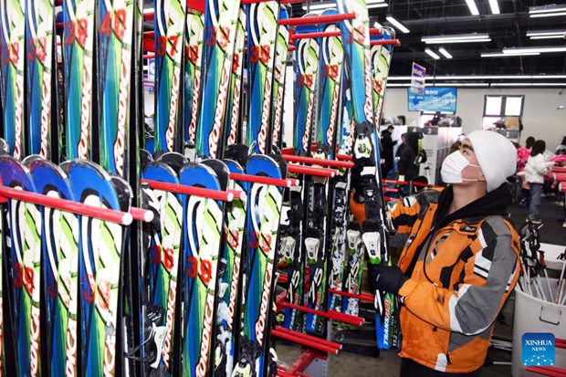 People experience skiing at a ski resort in Qingdao, east China's Shandong Province, Jan. 25, 2023. During the Spring Festival holiday, ski resorts in Qingdao have made full preparations to improve consumption experience and meet the demand of an increasing number of tourists. (Xinhua/Li Ziheng)