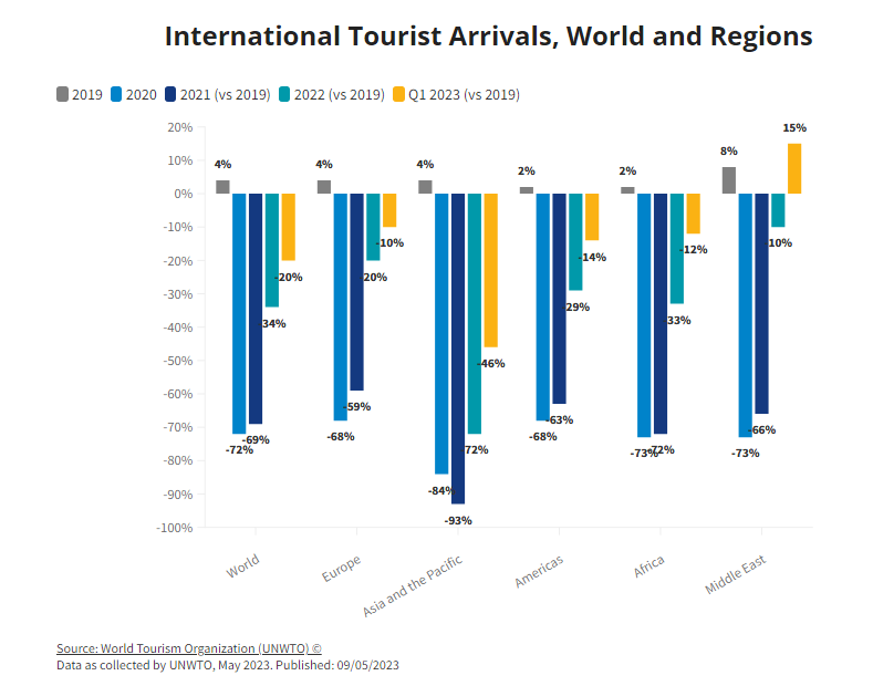 ·Asia and the Pacific accelerated its recovery with 54% of pre-pandemic levels, but this upward trend is set to accelerate now that most destinations, particularly China, have re-opened.