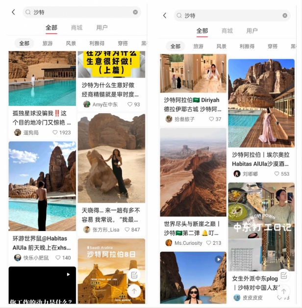 The top travel posts on Xiaohongshu for the search “Saudi Arabia.” Image: Xiaohongshu