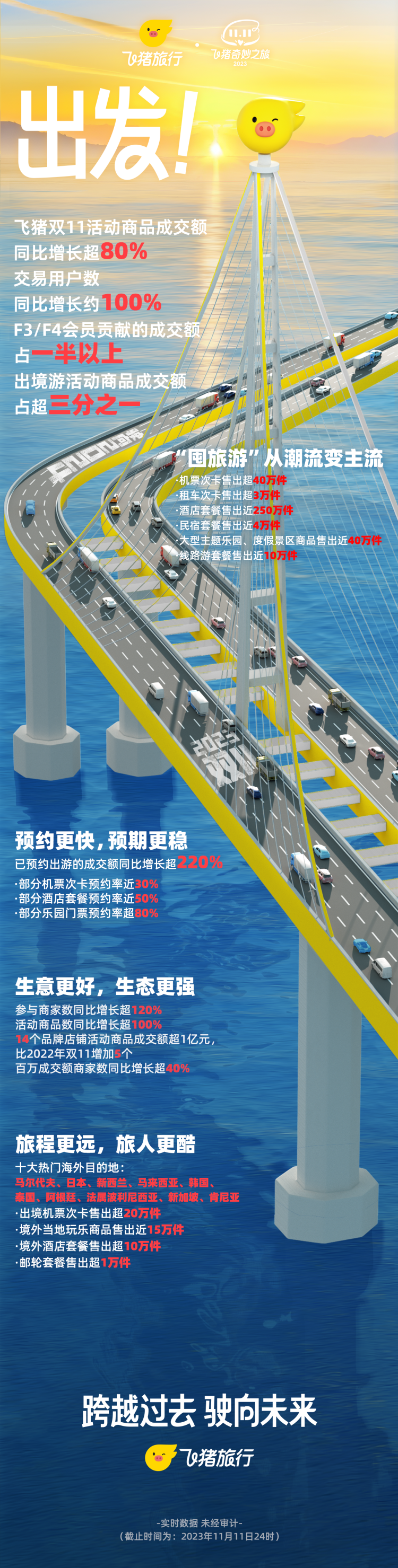 Zhuang Zhuoran, CEO of Fliggy, said: "The Double 11 festival showcased Fliggy's capacity to provide comprehensive services and our commitment to product innovation. The spike in transaction volumes on Fliggy underscored the strong upward trend of the tourism industry. As an open platform, Fliggy effectively connects with our merchants, and gives users a strong degree of confidence that creates a thriving ecosystem."