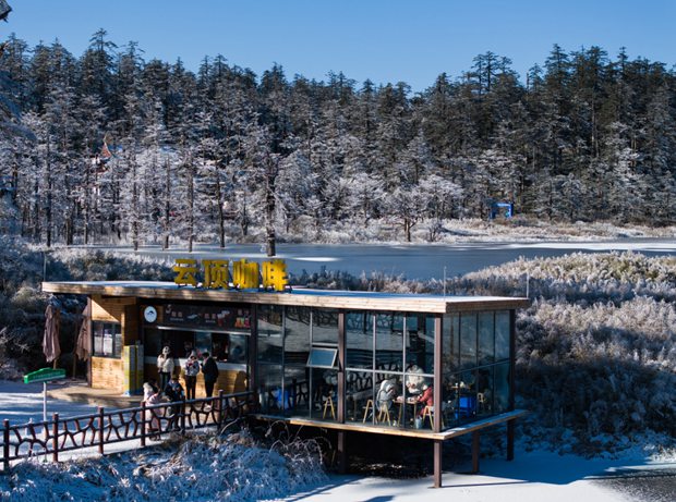 Visitors enjoy coffee at a cafe at Wawushan National Forest Park in southwest China's Sichuan Province on December 24, 2023. /CFP