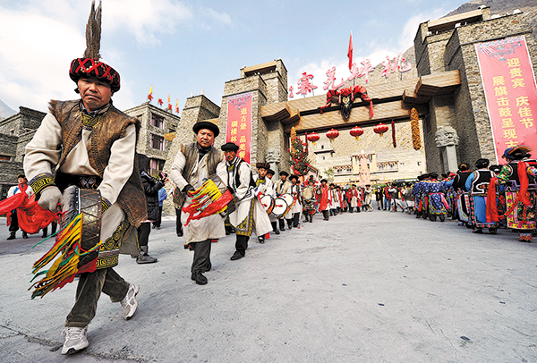 Ethnic Qiang people dance to greet the new year according to their traditional calendar in Taoping Qiang village, Aba Tibetan and Qiang autonomous prefecture, Sichuan province.[Photo by He Haiyang/For China Daily]