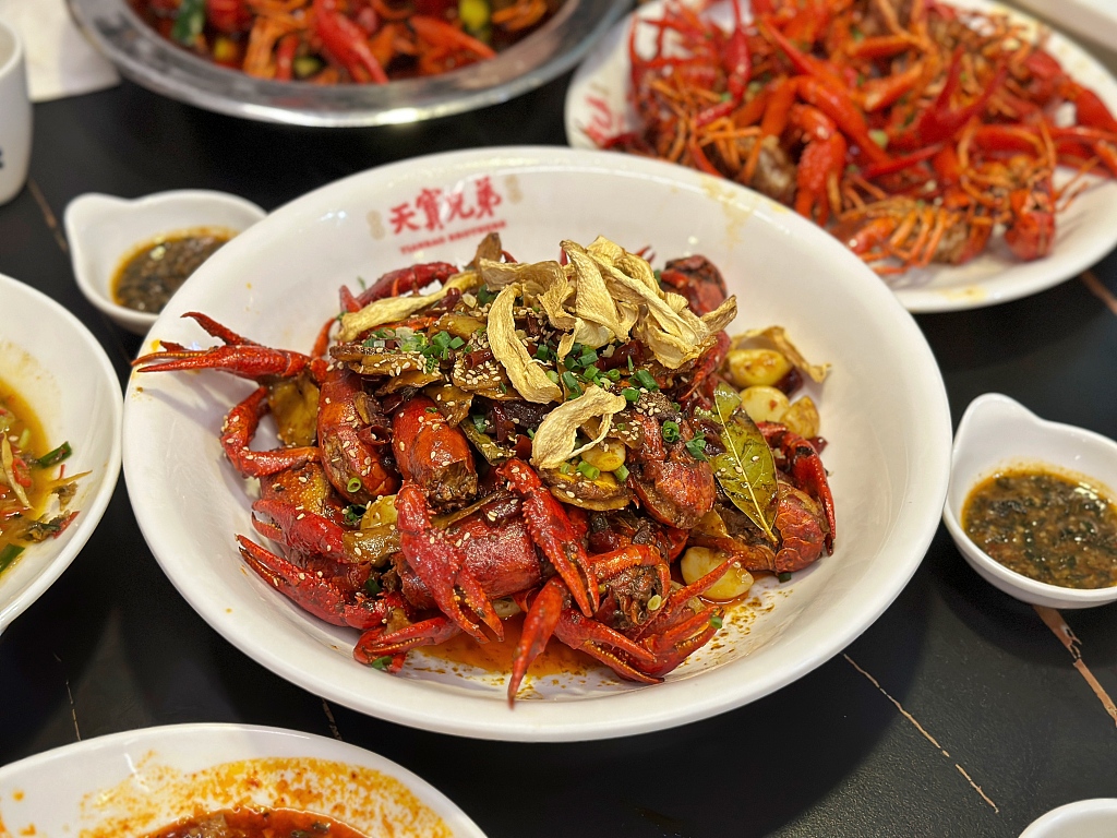 A photo taken on May 19, 2023, shows a spicy crayfish dish at Changsha's night market.[Photo/CGTN]