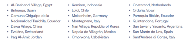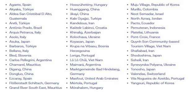 The list of the 52 Best Tourism Villages by UN Tourism 2025 is as follows (in alphabetical order by village):