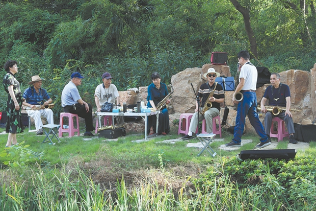 Residents enjoy their leisure time after a musical performance at the Nanquan Old Street in Wuxi. LI XINLEI